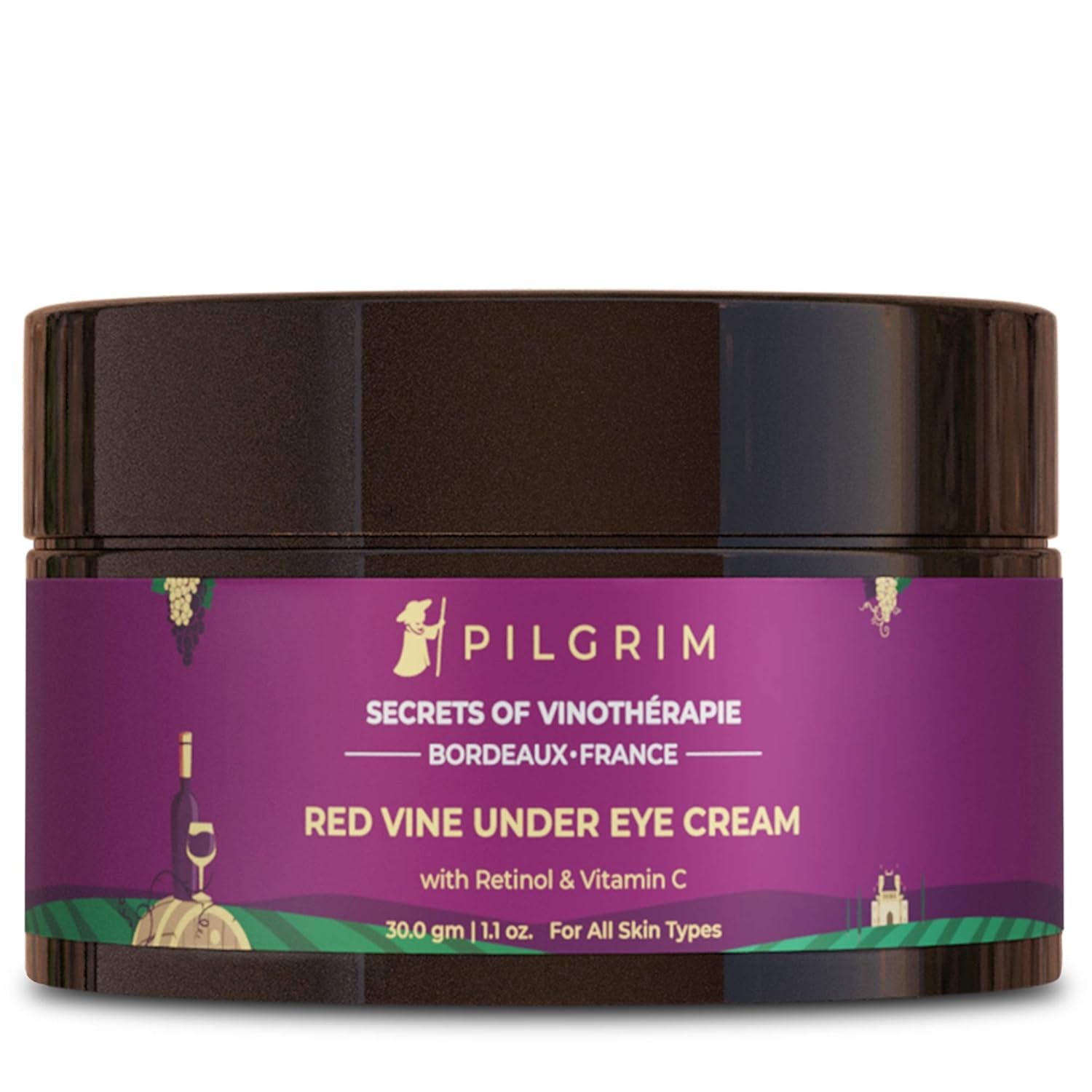 Restore the youthful appearance of the delicate under eye area with the Red Wine Under Eye Cream. Our skin keeps on losing elasticity and collagen as we age. Red vine extract increases the cellular turnover rate and promotes the production of collagen. It prevents the skin from becoming thinner with age and diminishes the appearance of fine lines, wrinkles and dark circles. Nourish and soothe your under eyes for brighter & lighter skin. Pilgrim anti ageing Under Eye cream relieves dark circles and helps to depuff the under-eye area. It also helps in sun damage recovery of the skin and it is best to keep your skin hydrated.